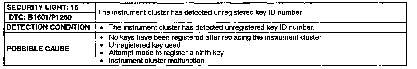 Detection Condition/Possible Cause: