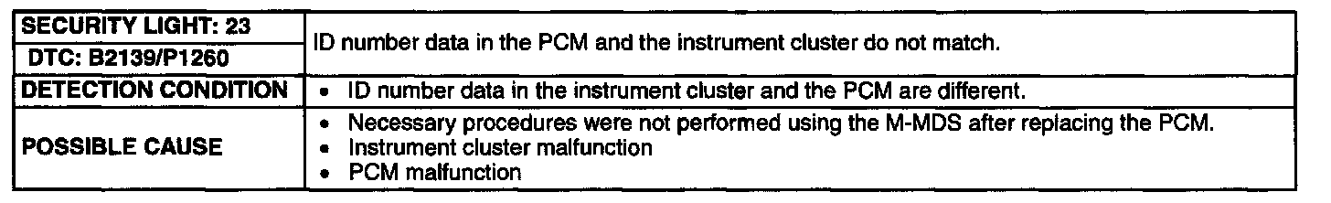 Detection Condition/Possible Cause: