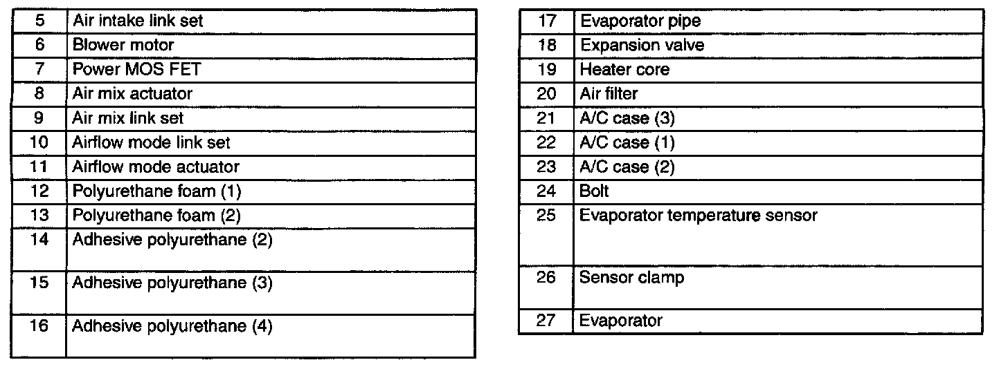 A/C UNIT DISASSEMBLY/ASSEMBLY[FULL-AUTO AIR CONDITIONER]1. Disassemble in the order indicated in the table.