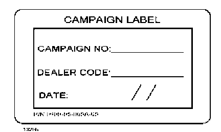 8. Fill out a blue "Campaign Label" (9999-95-065A-05) with Campaign No.: "MSP11", your dealer code, today's date, and affix it to the vehicle's bulkhead.