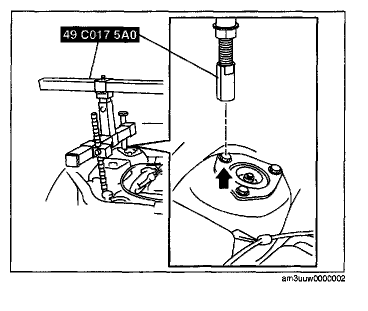 (1) Install the right rear shaft of the SST to the bolt of the right shock absorber as shown in the figure.