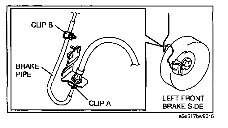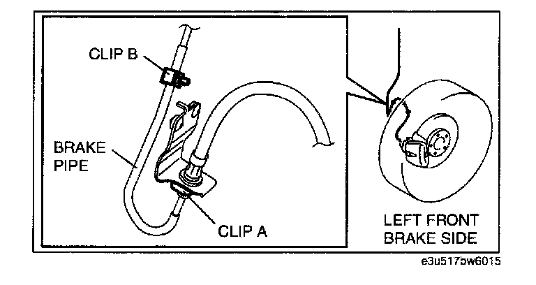 2. Remove the clip B from the brake pipe (LF).
