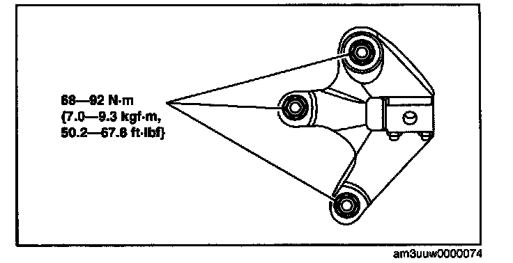 Tightening torque 37.3 - 52.0 N-m (3.8 - 5.3 kgf-m, 27.6 - 38.3 ft-lbf)