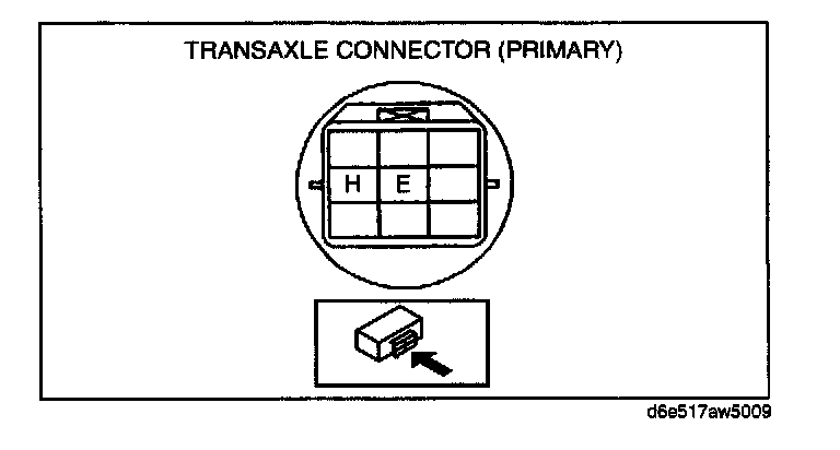 5. Measure the resistance between the terminals E and H. If it is out of specification, perform the off vehicle inspection of TFT sensor.