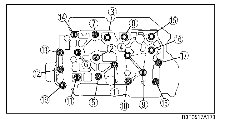 8. Hand-tighten the bolts shown in the figure. Each type of bolt has a different letter on its head.