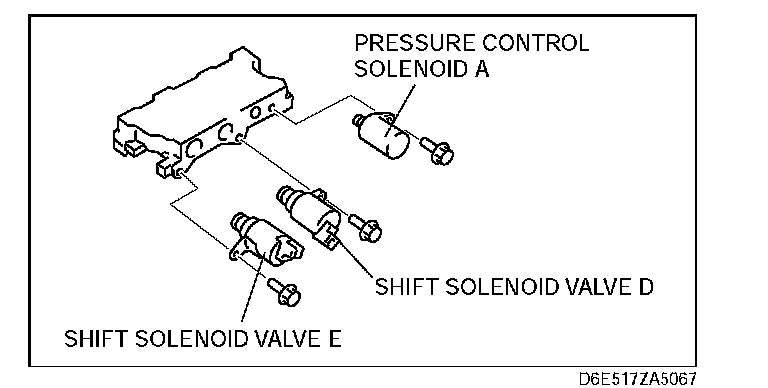 10. Install the shift solenoid D, E, and pressure control solenoid A.
