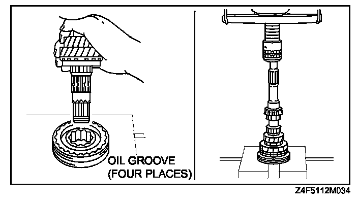 Install the 3rd gear, 3rd synchronizer ring, and 3rd/4th clutch hub component using a press.