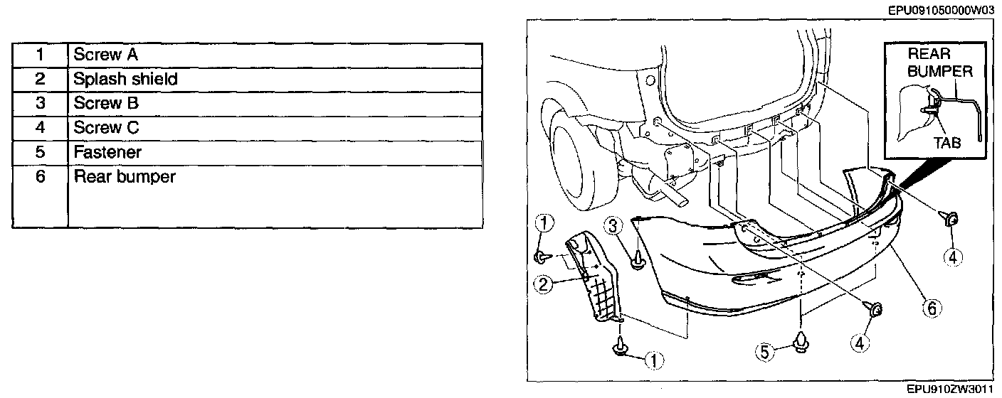 REAR BUMPER REMOVAL/INSTALLATION1. Remove in the order indicated in the table.