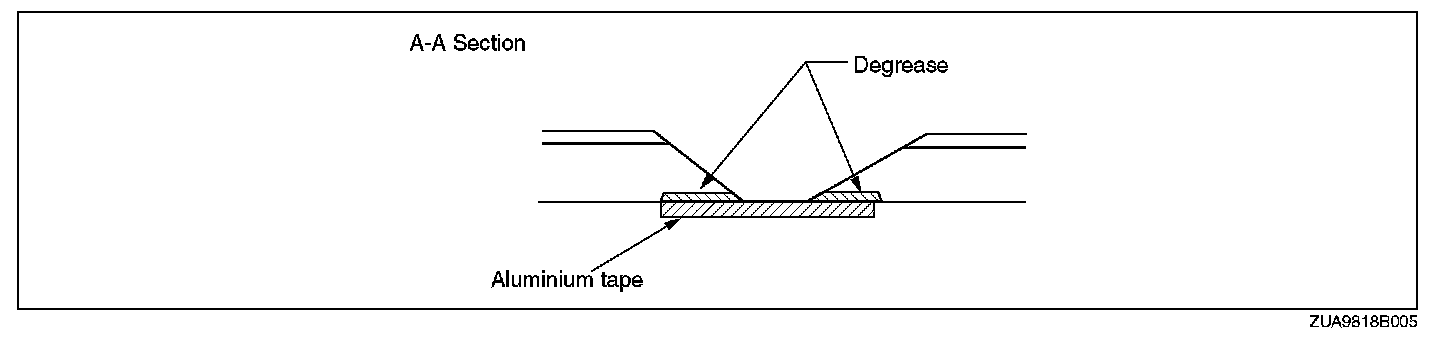 - For repair of a hole, degrease the area on both sides of the bumper and apply aluminium tape on the reverse side of the damage area.