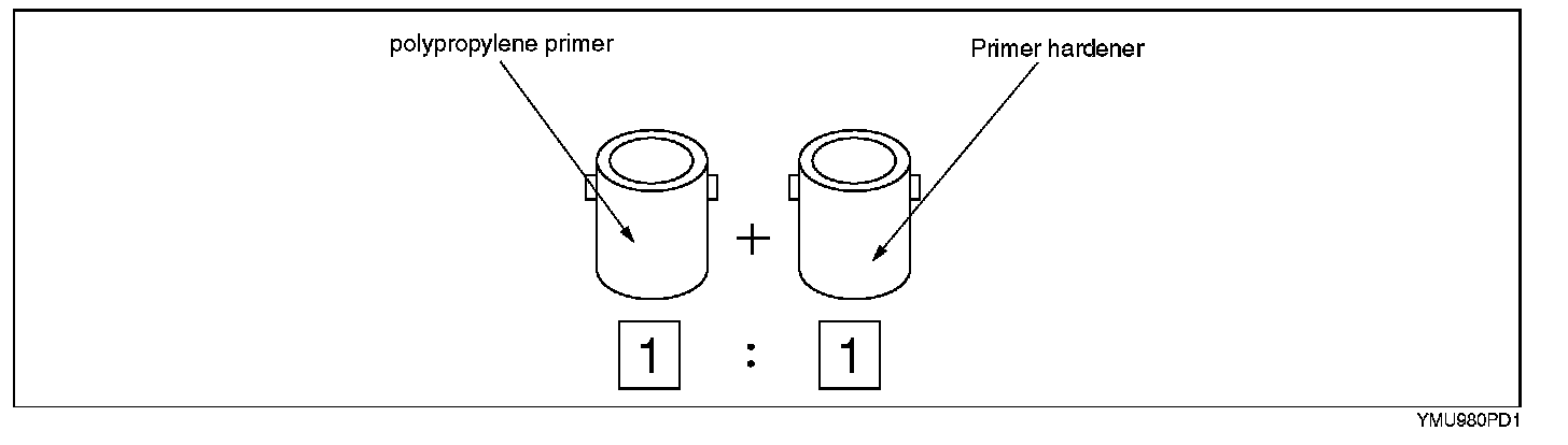 NOTE: Be sure to use only urethane primer for a urethane bumper and polypropylene primer for a polypropylene bumper. Other paints for repairing a polypropylene bumper are the same as those for the urethane bumper.