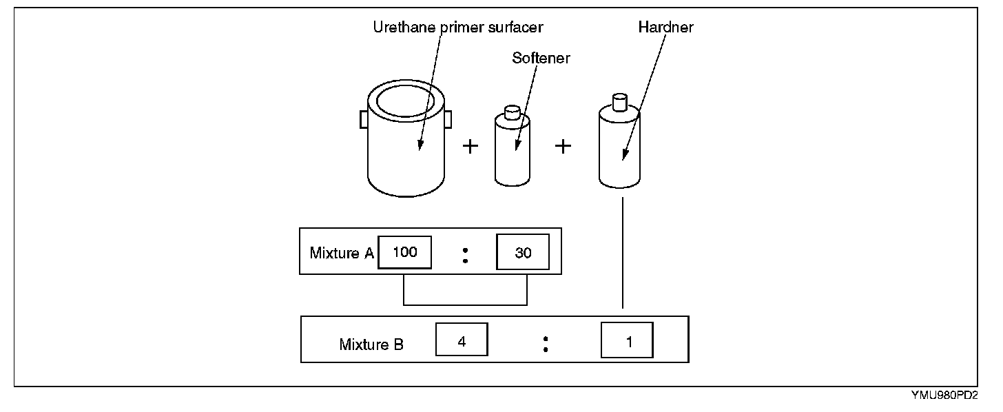 Urethane primer surfacer + Softener....Mixture A