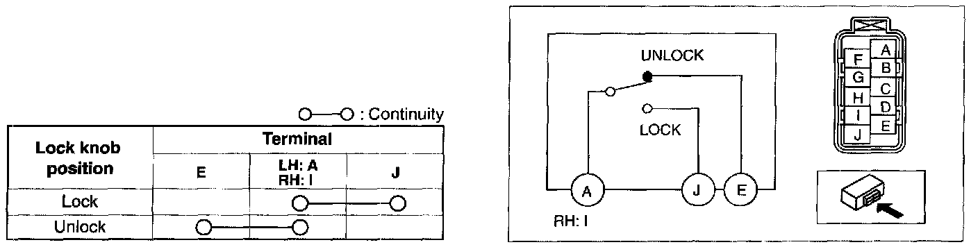 1. Inspect for continuity between the door lock-link switch terminals.