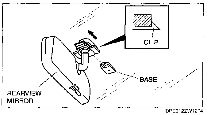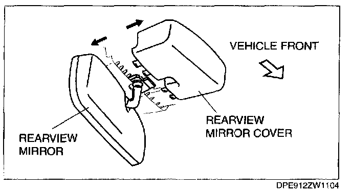 REARVIEW MIRROR REMOVAL/INSTALLATION1. Insert a tape-wrapped flathead screwdriver into the notch and pry with the screwdriver in the direction shown by the arrow to remove the covers. (Vehicles with auto wiper system)