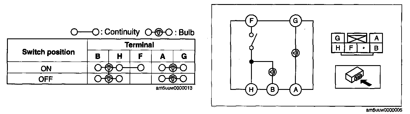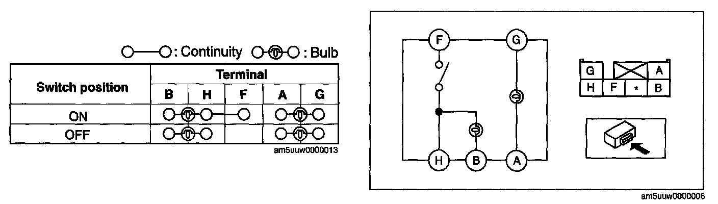 1. Verify that the continuity between the seat warmer switch terminals is as indicated in the table