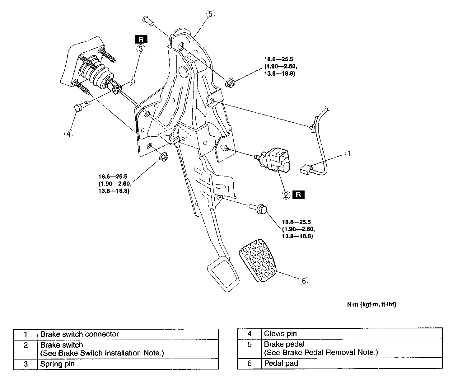 BRAKE PEDAL REMOVAL/INSTALLATIONCaution: