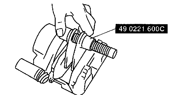 1. Temporarily install the retaining clip to the caliper and mounting support as shown in the figure.