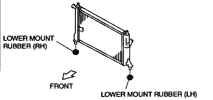 2. While lifting the radiator, remove the lower mount rubber (LH) from the mount installation hole.