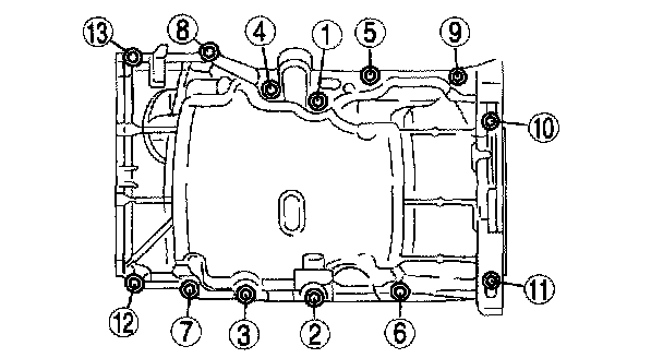 2. When reusing the oil pan installation bolts, clean any old sealant from the bolts.