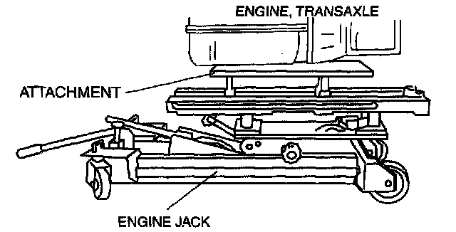 1. Secure the engine and the transaxle using an engine jack and attachment as shown in the figure.