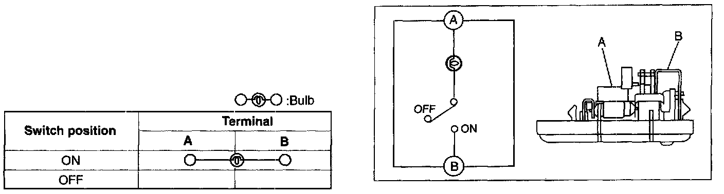 Verify that the continuity between the cargo compartment light terminals is as indicated in the table.