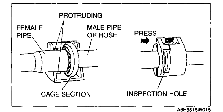 NOTE: The male pipe or hose can be disconnected easily from the female pipe by pulling from the male pipe or hose while maintaining the pressure of the protruding part of the SST.