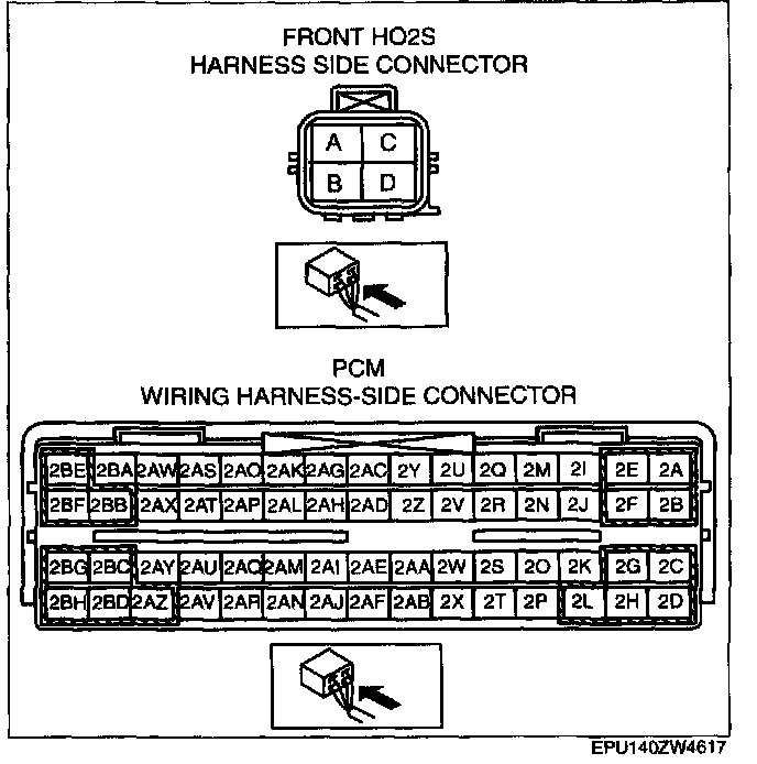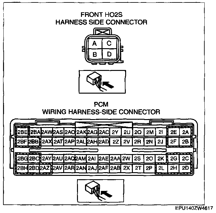 FRONT HEATED OXYGEN SENSOR (HO2S) INSPECTION [L3]NOTE: Before performing the following inspection, make sure to follow the procedure as indicated in the troubleshooting flowchart.