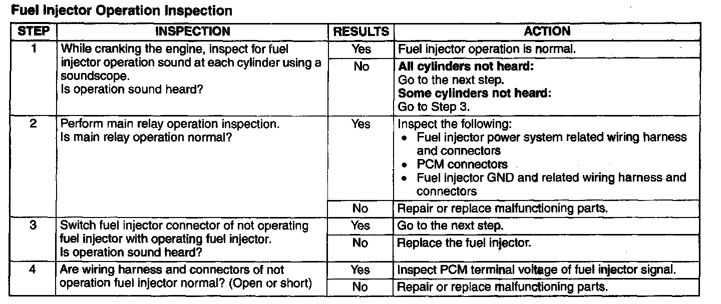 Fuel Injector Operation Inspection