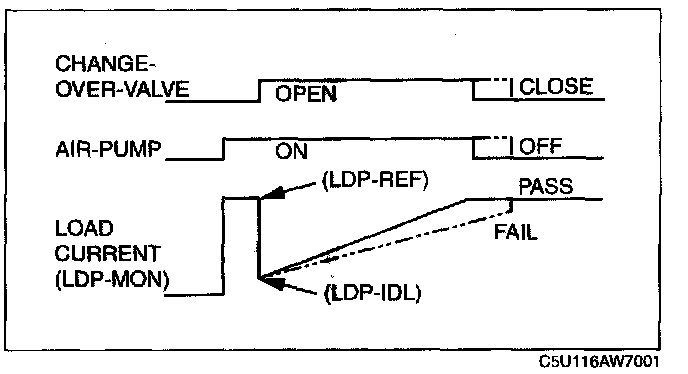 iii. The PCM continues to monitor the air pump load current value (LDP_MON PID) until the end of the test.