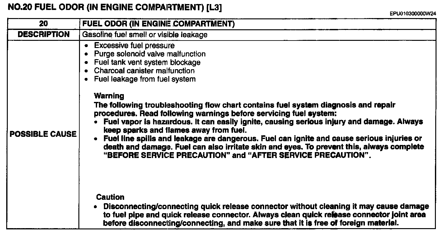 No. 20 Fuel Odor (In Engine Compartment)