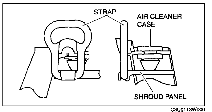 1. Using the strap, secure the shroud panel and the air cleaner case as shown in the figure.