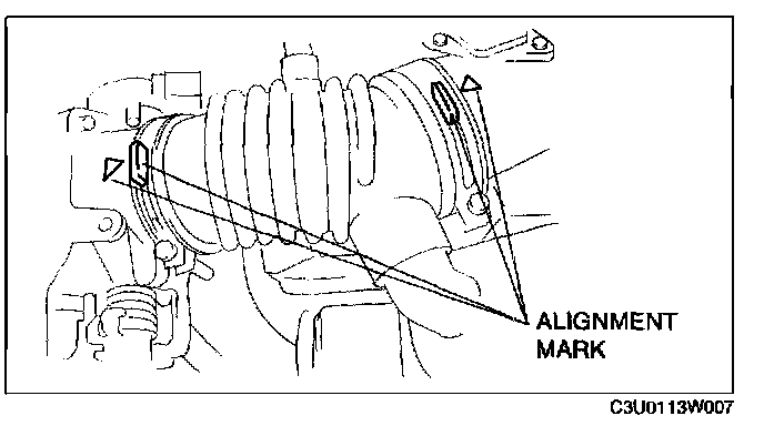 1. Align the alignment marks on the throttle body and the air hose.