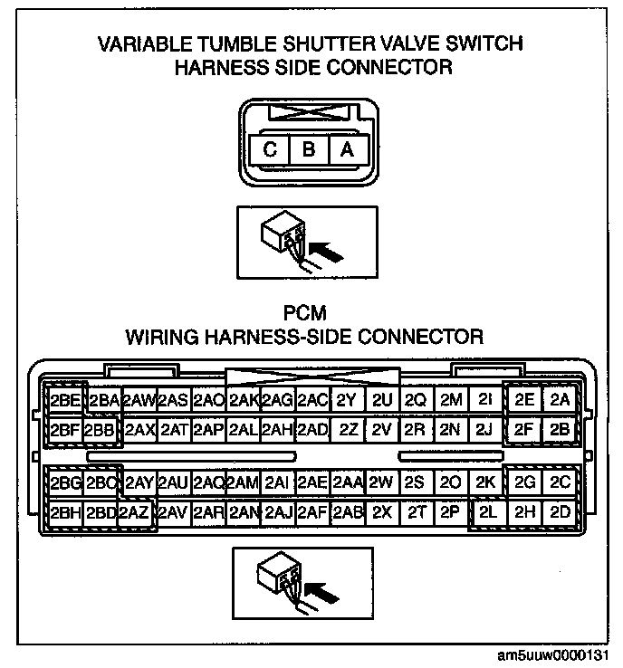 - Variable tumble shutter valve switch terminal A and PCM terminal 2AU