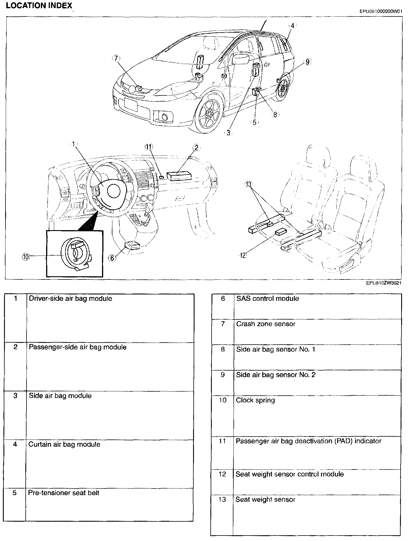 Air Bag System - Location Index: