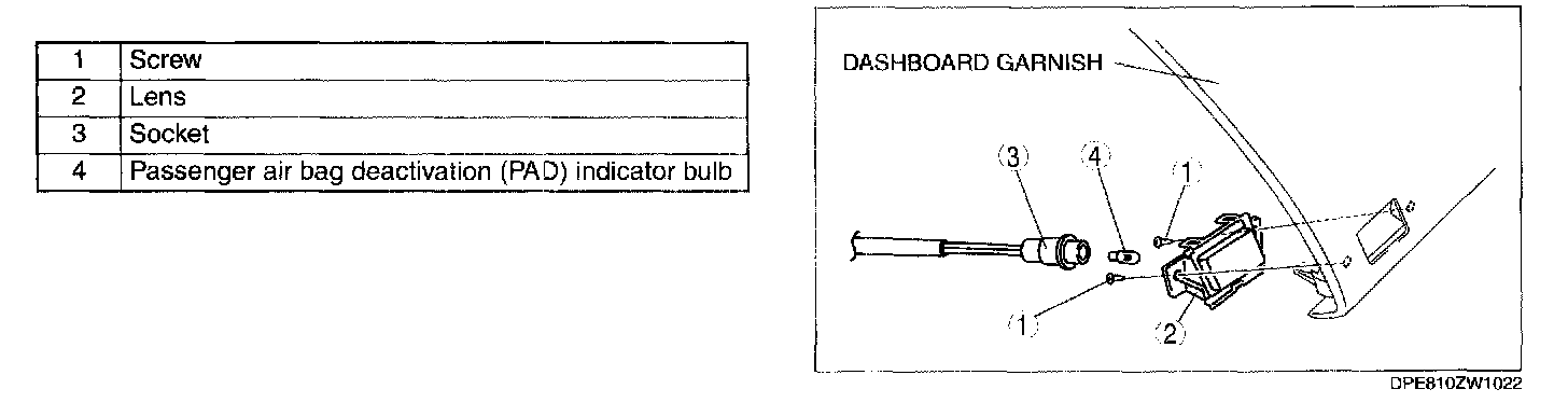 PASSENGER AIR BAG DEACTIVATION (PAD) INDICATOR REMOVAL/INSTALLATION1. Remove the battery cover.
