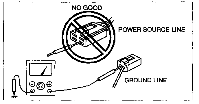Caution: Do not connect a jumper wire from the power source line to a body ground. This may cause burning or other damage to wiring harnesses or electronic components.
