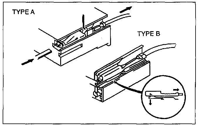 - Use the appropriate tools to remove a terminal as shown. When installing a terminal, be sure to insert it until it locks securely.