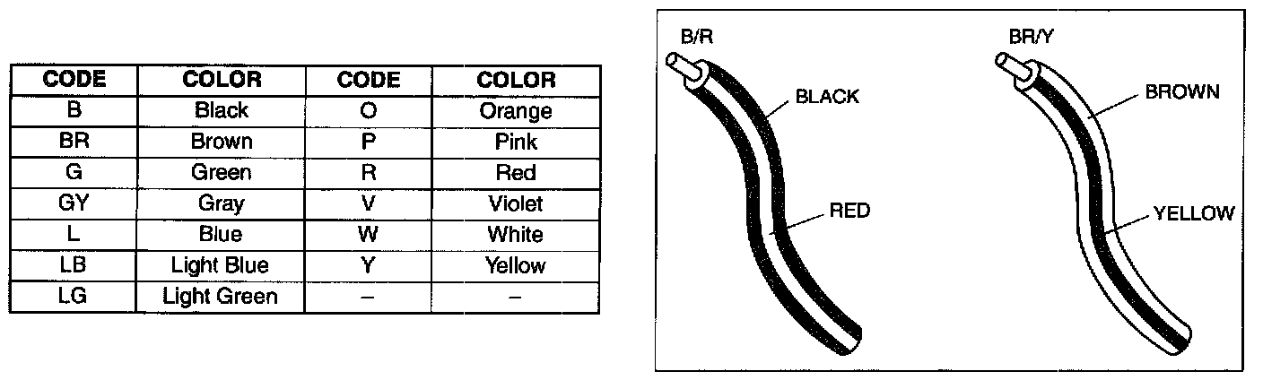 - The first letter indicates the base color of the wire and the second the color of the stripe.