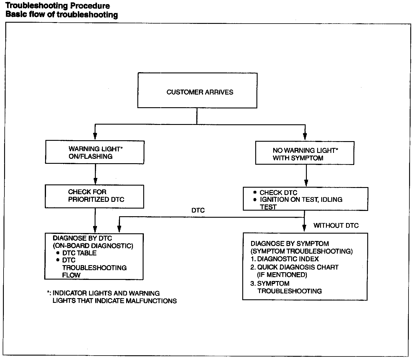 - The quick diagnosis chart lists diagnosis and inspection procedures to be performed specifically relating to the cause of the malfunction.