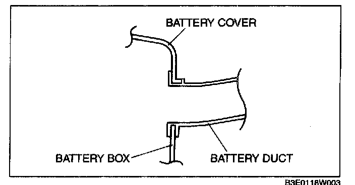 1. Install the battery duct between the battery cover and the battery box.
