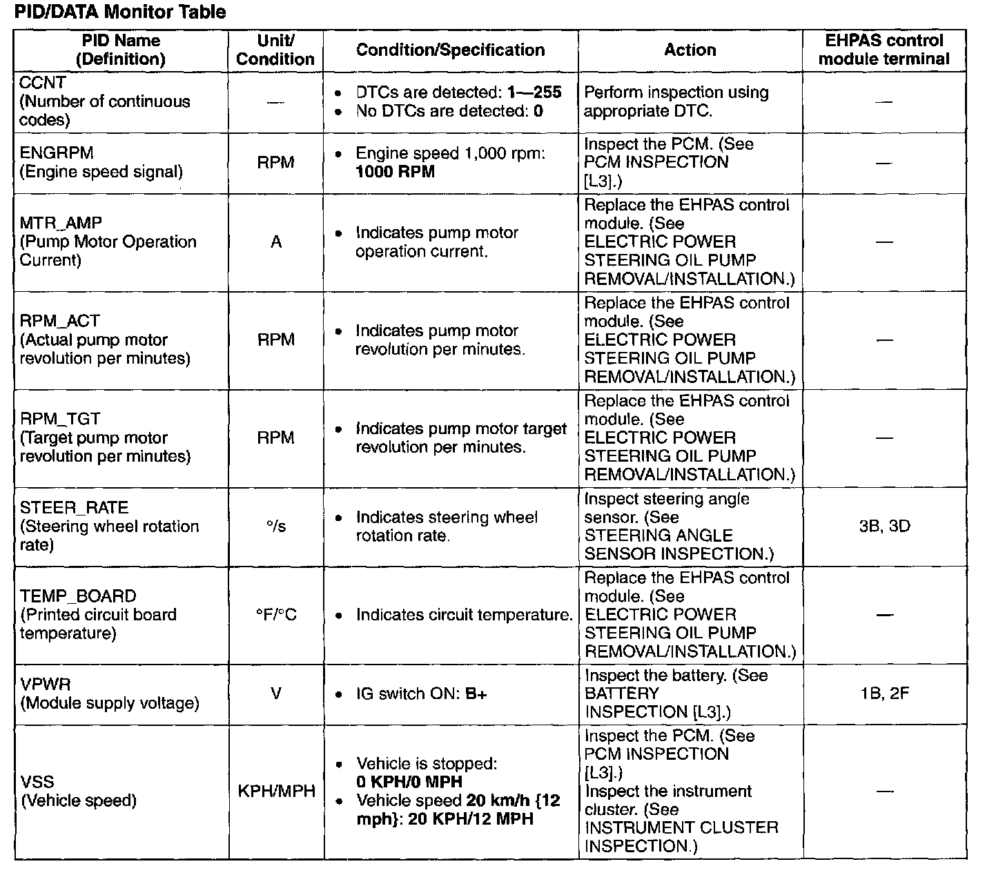 PID/DATA Monitor Table: