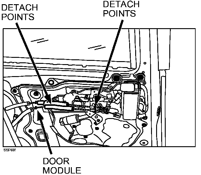 14. Detach the sliding door latch cable and open lock actuator release cable from the door module and sliding door lock actuator.