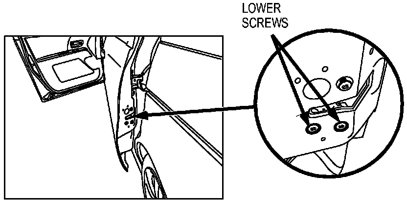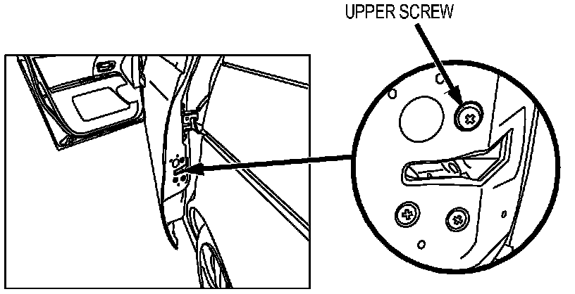 23. With the other hand (left hand on the driver's side and right hand on the passenger's side), reach through the gap between the door and the C-pillar and remove the upper mounting screw.