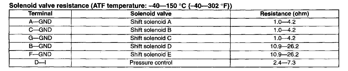 Solenoid valve resistance (ATF temperature: -40-150C (-40-302F)):