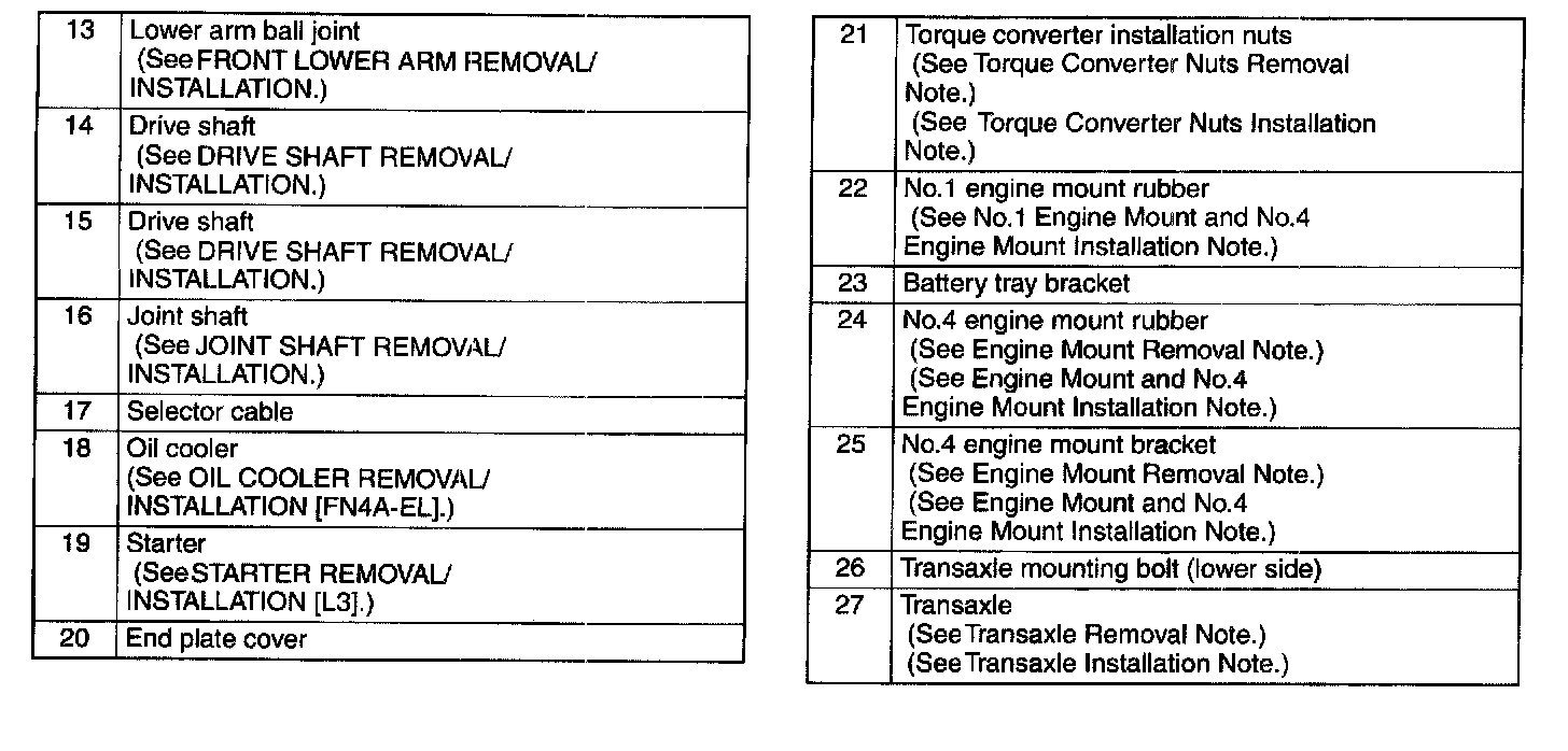 Automatic Transaxle Removal/Installation [FN4A-EL]