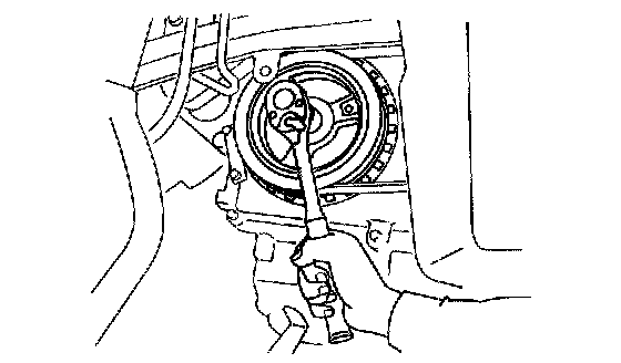 1. Hold the crankshaft pulley to prevent the drive plate from rotating.