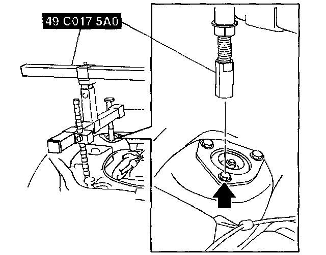 3. Place the No.4 engine mount rubber with the body stud bolts passing through the holes and tighten the new bolt as shown in the figure,