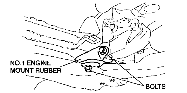2. Install the No.1 engine mount rubber to the crossmember and temporarily tighten bolts.
