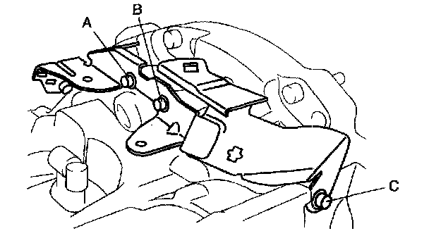 1. Install the harness bracket and temporarily tighten bolt A and B.