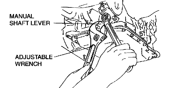 6. Set the adjustable wrench as shown in the figure to hold the manual shaft lever.