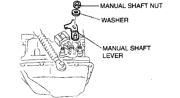 Caution: Do not use an impact wrench. Hold the manual shaft lever when removing the manual shaft nut, or the transaxle may be damaged.